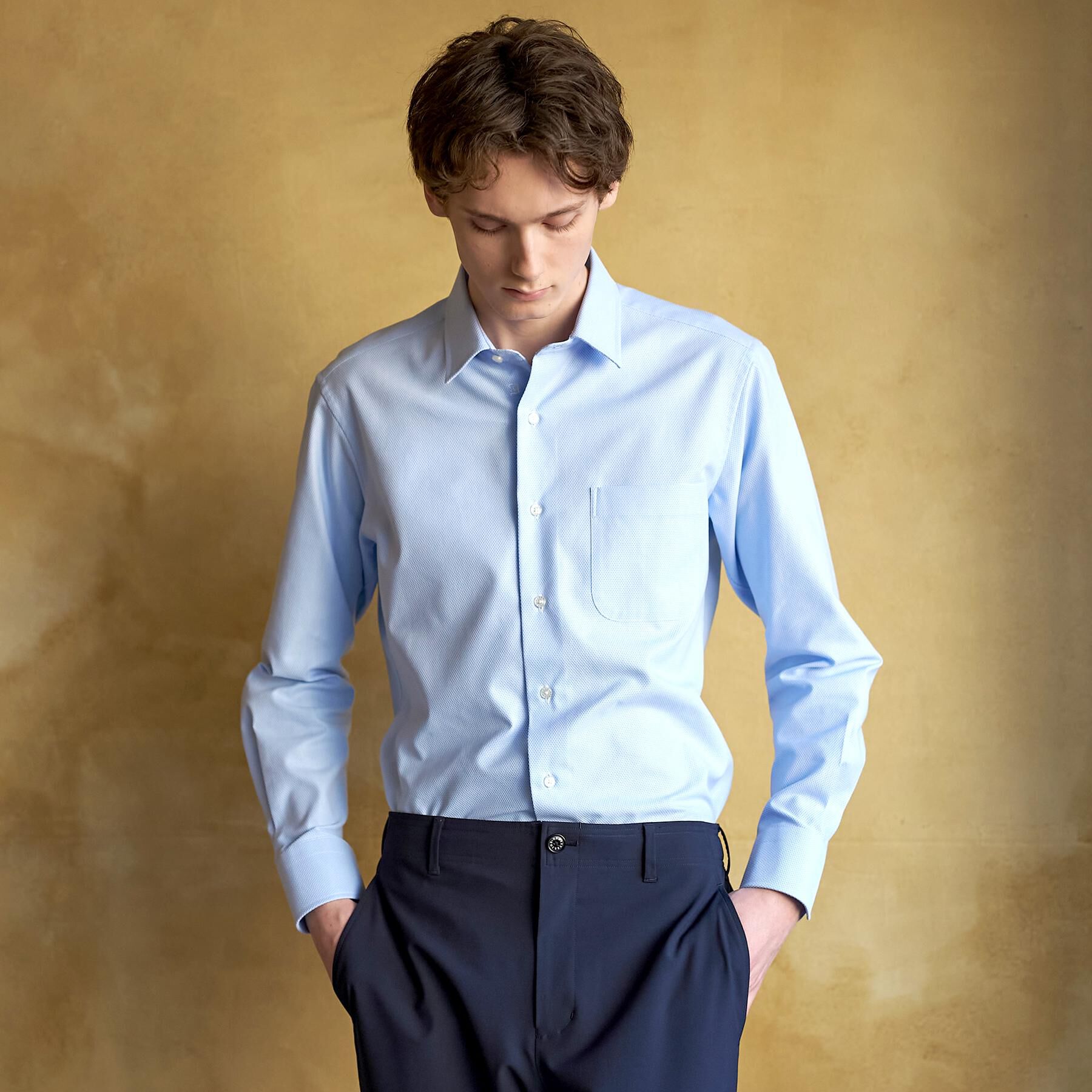 《ドビーツイルの艶やかな質感!上品なカラーリングのワイドカラークレリック》生地には良質なコットンをドビー織機で織り上げたコットンツイル素材を使用。織.. |
