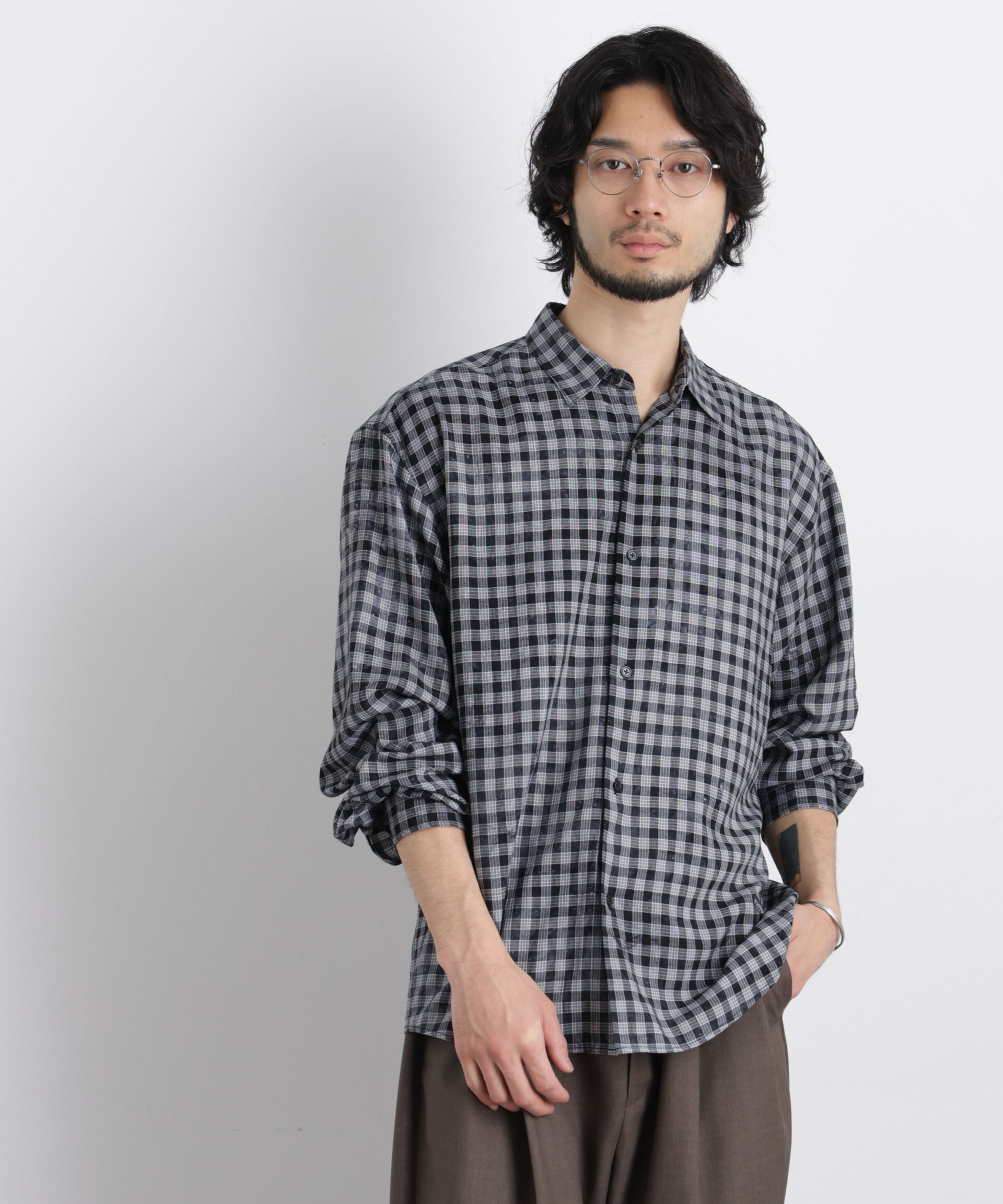 【ナノ・ユニバース/NANO universe】 シースルーチェックシャツ 長袖