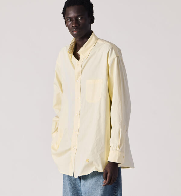 <デザイン>- ワイドシルエットのレギュラーカラー長袖シャツ- オリジナルのドット釦- 左胸にブランドワッペン- ラウンドヘム / 前後差のある着丈<素材>- .. |