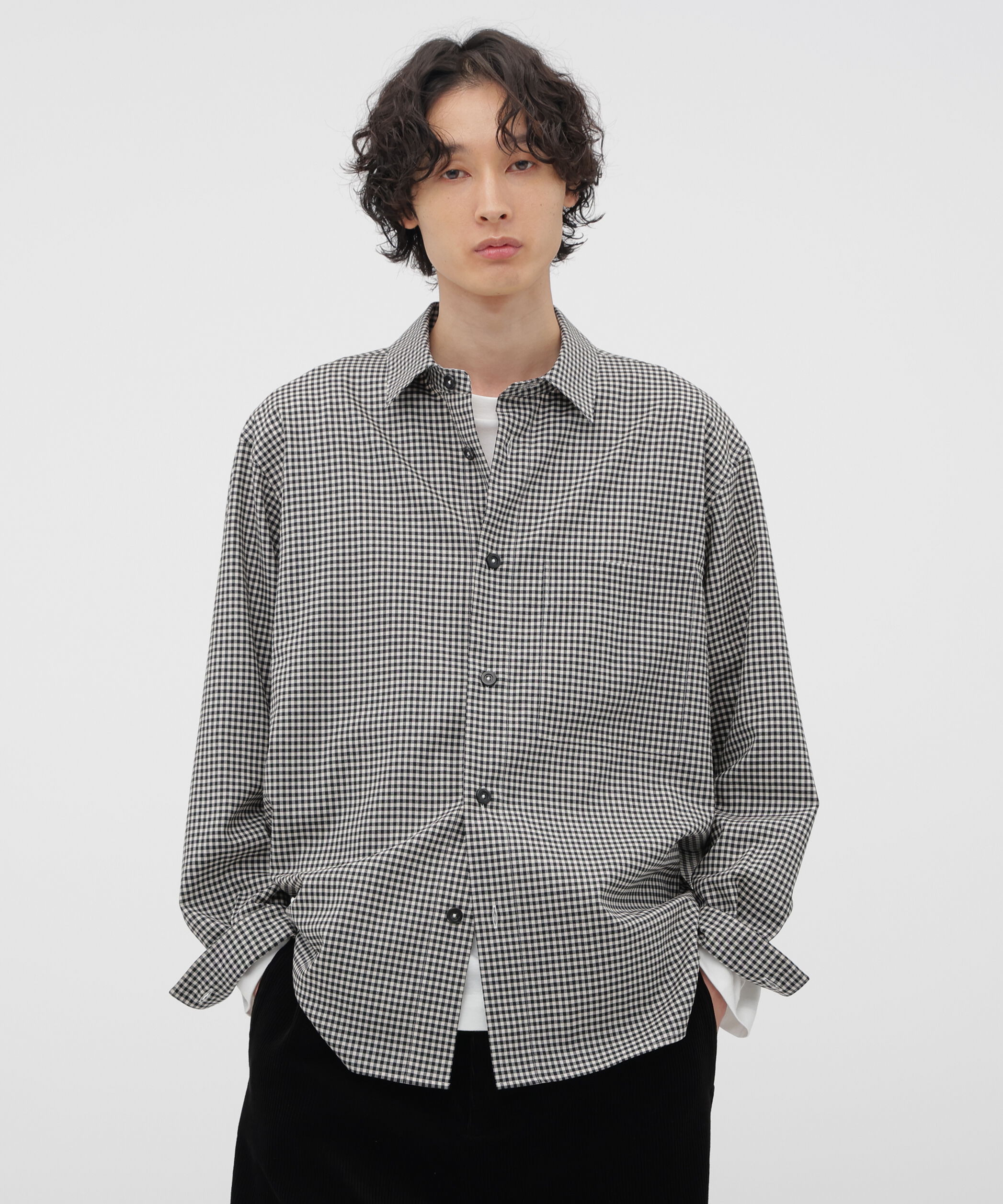 細くしなやかな原毛を使った、すっきりとした表情のウールシャツ。オリジナルスケールで組んだギンガムチェックに、ウォッシャブル加工を加えた扱いやすいタッ.. |