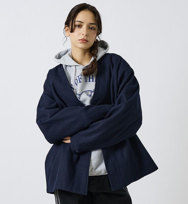 上質でしっかりと目の詰まったメルトンウール地を採用した、ゆったりとした身幅や太めのアームホールが特徴のライナーコート。後身頃に入るスリットはボタン留.. |