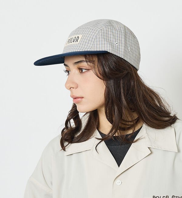 POLERの定番として人気を博している5パネルキャップのクラウンにチェック素材をあしらいアップデート。チェック柄はほどよく主張しながらもコーデに馴染みやす.. |