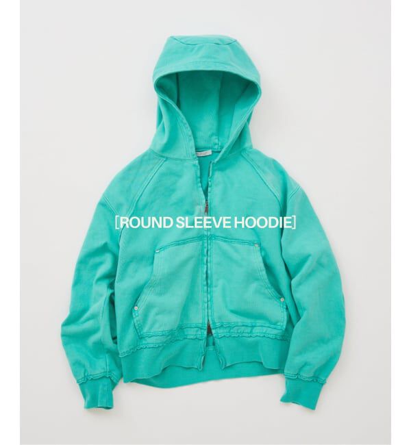 ROUND SLEEVE HOODIEヘビーオンス裏毛を使用したZIPパーカ。ミリタリージャケットを思わせるフォルムをベースに、袖を前振りにすることでブルゾンのような立体.. |