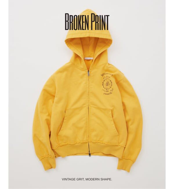 BROKEN PRINT ZIPUP HOODIEヘビーオンス裏毛を使用したZIPパーカ。フロントにはヴィンテージスウェットさながらのグラフィックをのせ、擦れやムラをあえて残し.. |