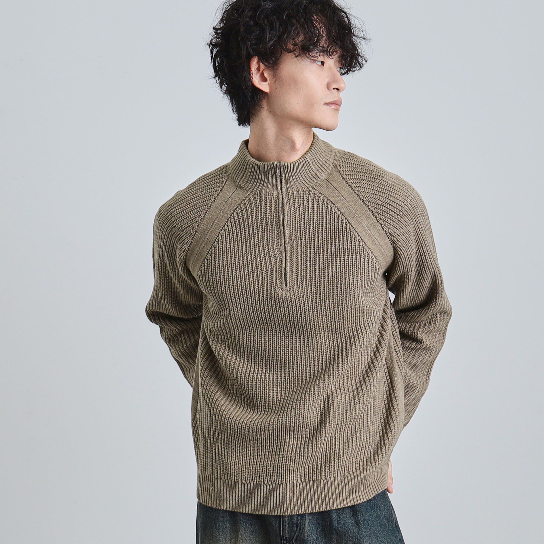 【ティーケー タケオキクチ/tk.TAKEO KIKUCHI】 片畦ハーフジップニット
