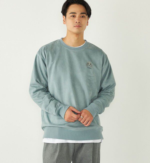 ■25AW■左胸にアニマル柄を刺繍した、合繊素材のフェイクスエードスウェット。1ポイントの刺繍は、シンプルでワードローブに取り入れやすいデザインに仕上げま.. |