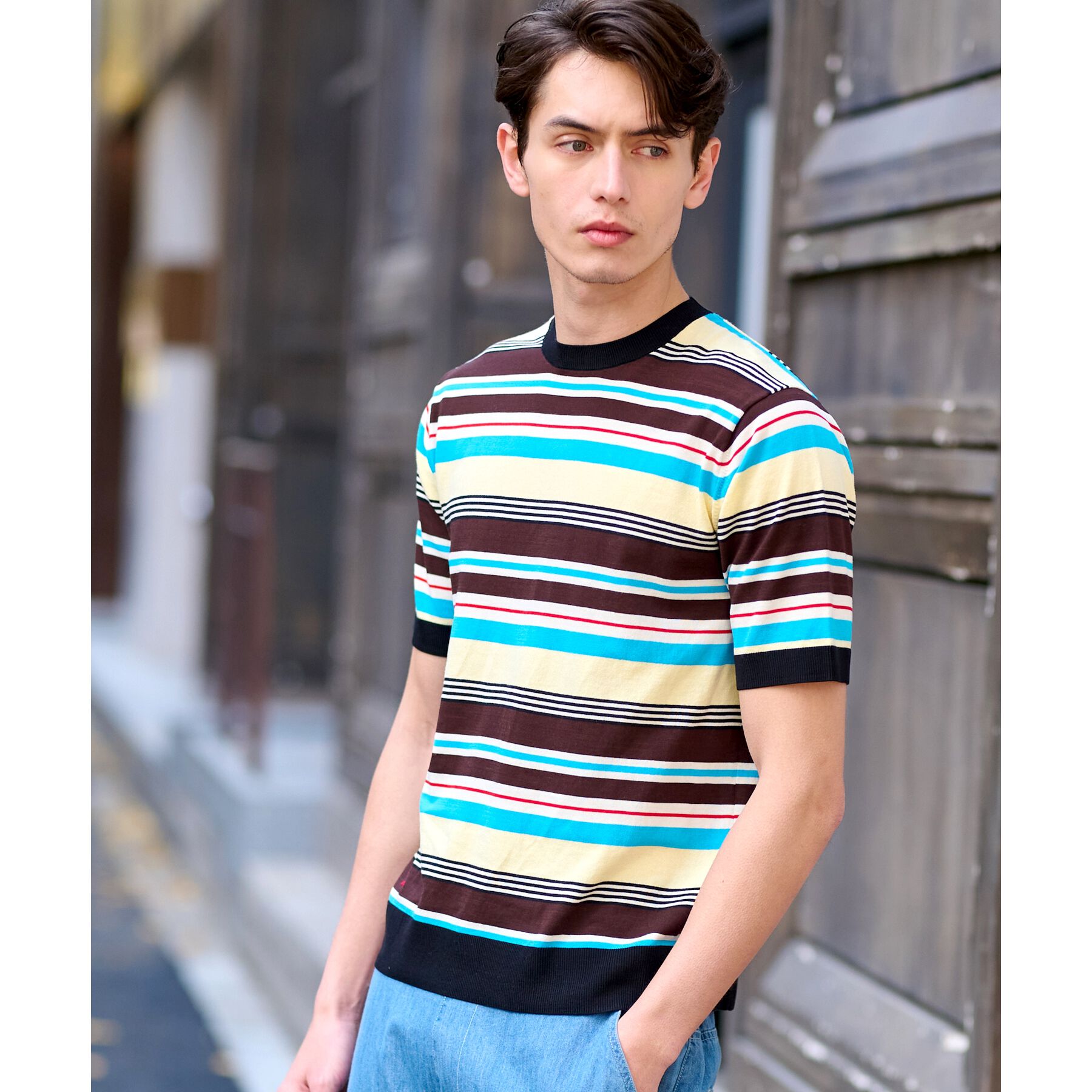 【ドレステリア/DRESSTERIOR】 コットンシルク混 マルチボーダーニット