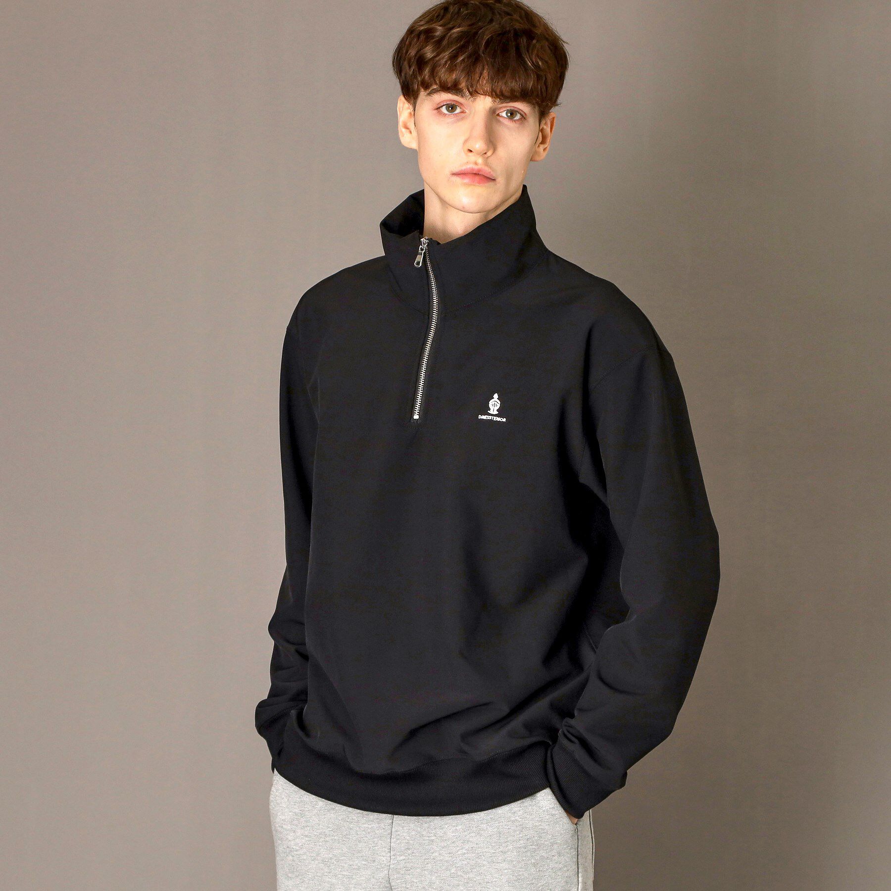 《胸元のワンポイント刺繍が光るハーフジッププルオーバー》●こだわり首元のファスナーの開け方で印象を変えられるハーフジップデザイン。スポーティな雰囲気.. |