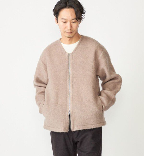 暖かみのある風合いが特徴のノーカラーカーディガン【素材特性】ウールパイルを起毛したニットライクな素材を使用。軽さがあり柔らかな肌触りで、暖かみのある.. |