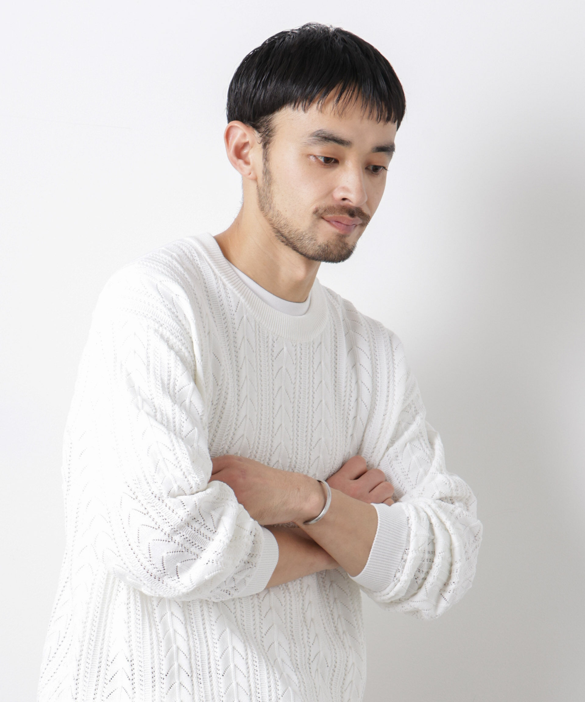 【ナノ・ユニバース/NANO universe】 「ASSEMBLANC」コードヤーンシアーケーブルニット