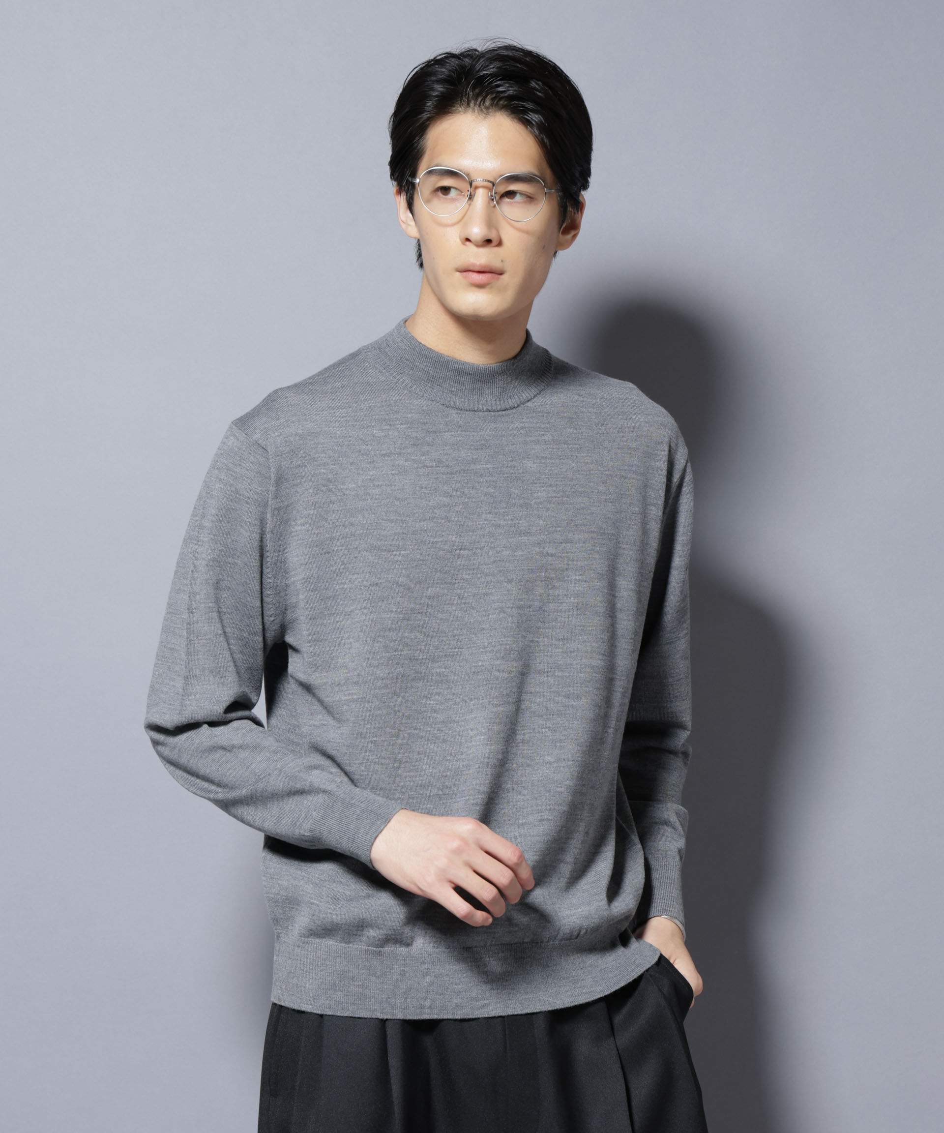 【ナノ・ユニバース/NANO universe】 「毛玉レスニット」ファインゲージモックネック