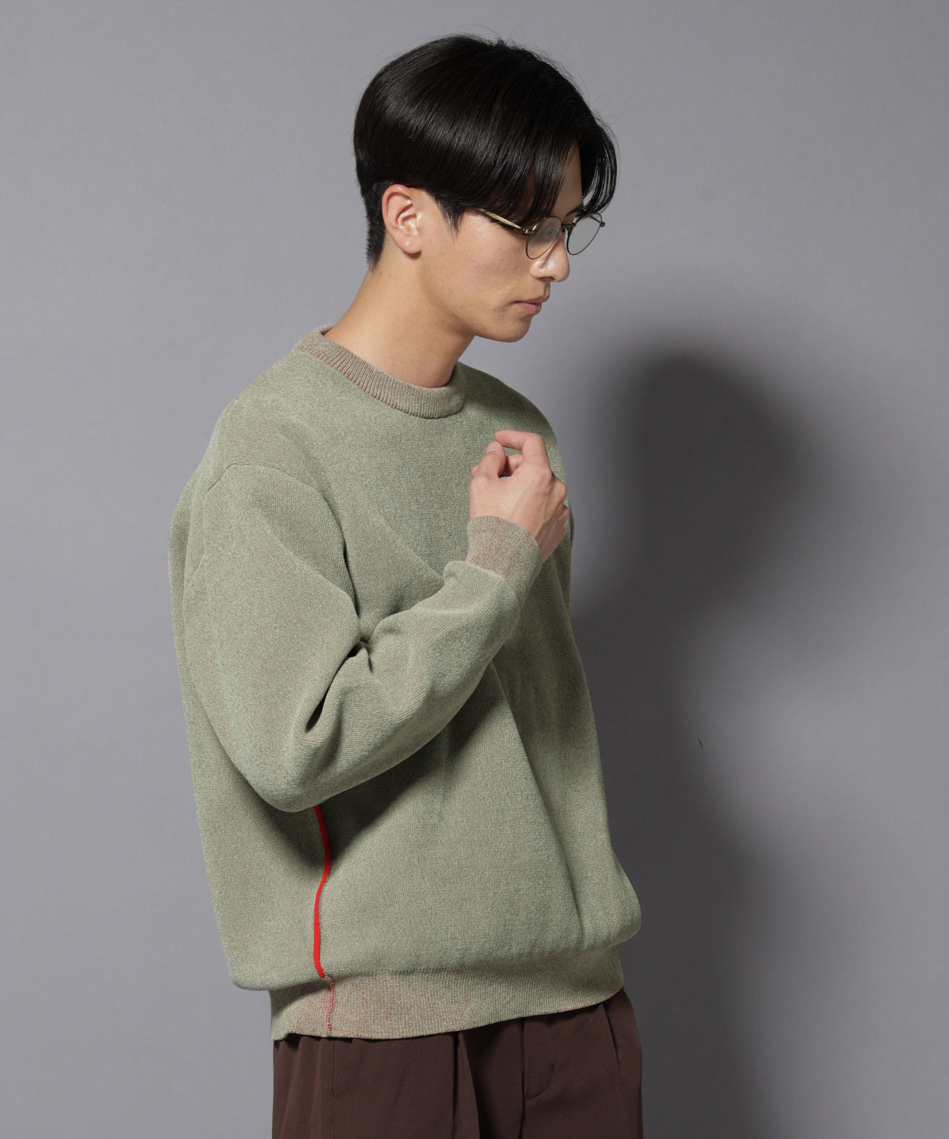【ナノ・ユニバース/NANO universe】 モールヤーンダブルフェイスクルーネックニット