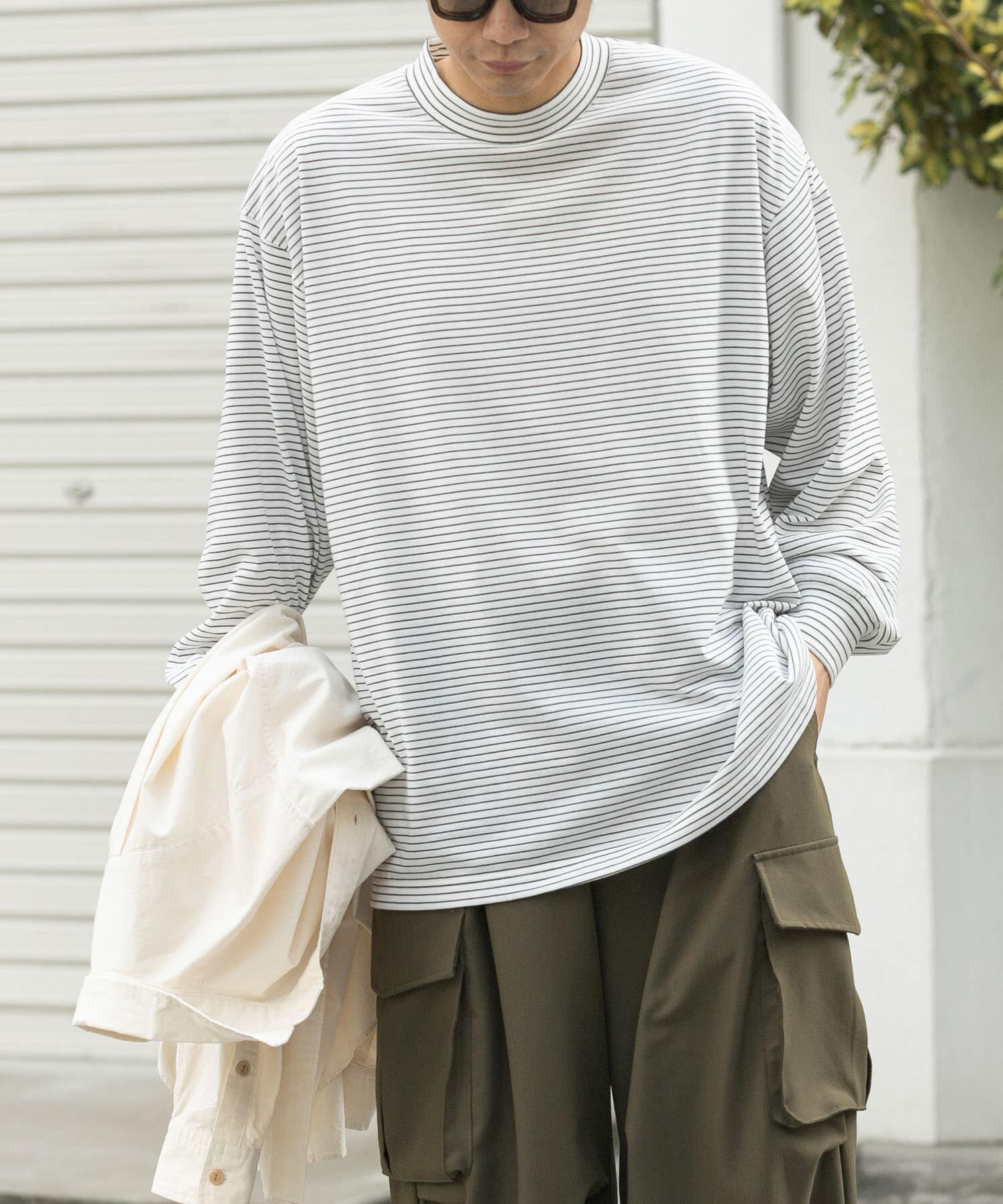 定番で着られるボーダーTを主張しすぎない細かなミジンボーダーで今季もご用意。さらっとした肌触りで着心地よく、吸水速乾性やイージーケア性を持つ糸「CAVE.. |