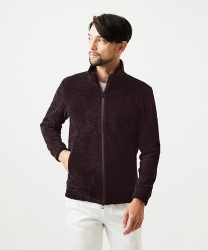 MICHEL KLEIN HOMME(ミッシェルクランオム) スタンドカラーモールニットカーディガン ワイン 51