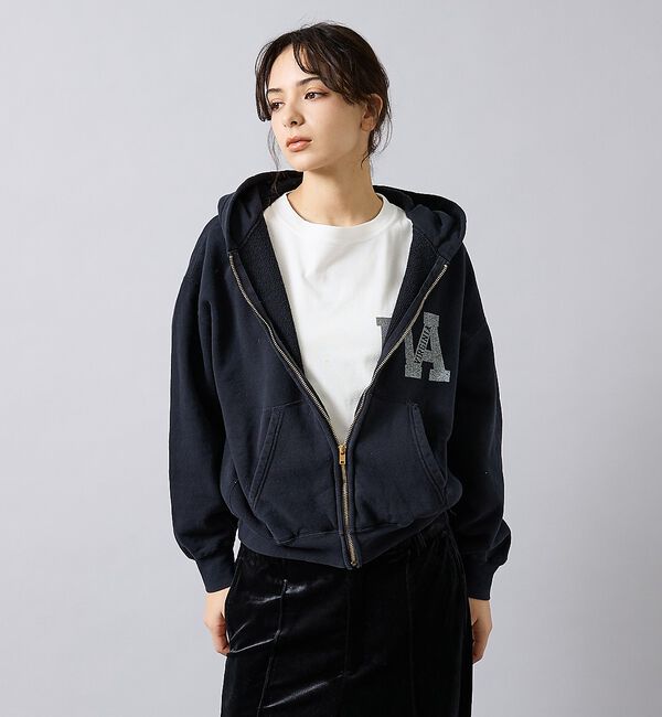 SP加工×3飛び裏毛。フェード感が映えるZIPフーディ。REMI RELIEF独自のSP加工を施した3飛び裏毛ZIPパーカー。90年代スウェットを彷彿とさせる自然なフェード感.. |