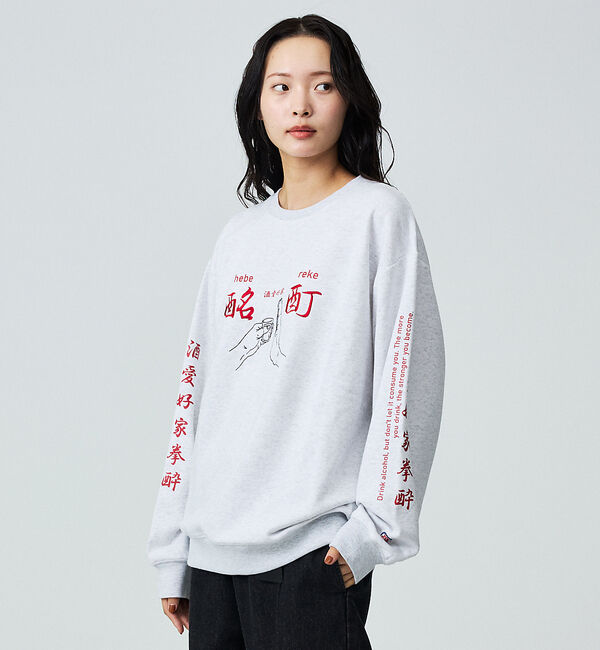 YOIDOREの定番的デザイン、和洋中のMIXがインパクト抜群なクルースウェット。「酔いどれは背中で語る」後ろ姿で酔いをアピール。ややゆったりめのルーズなシル.. |