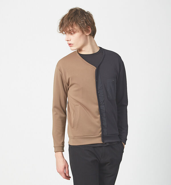 【デザイン】布帛で切り替えた珍しいデザインのプルオーバー。ボディ全体はストレッチ性抜群のダンボール素材を使用し、切り替えとなった布帛部はワンスナップ.. |