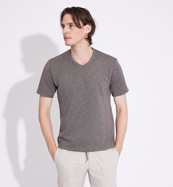 【アバハウス/ABAHOUSE】 撚り杢ツイル Vネック 半袖 Tシャツ