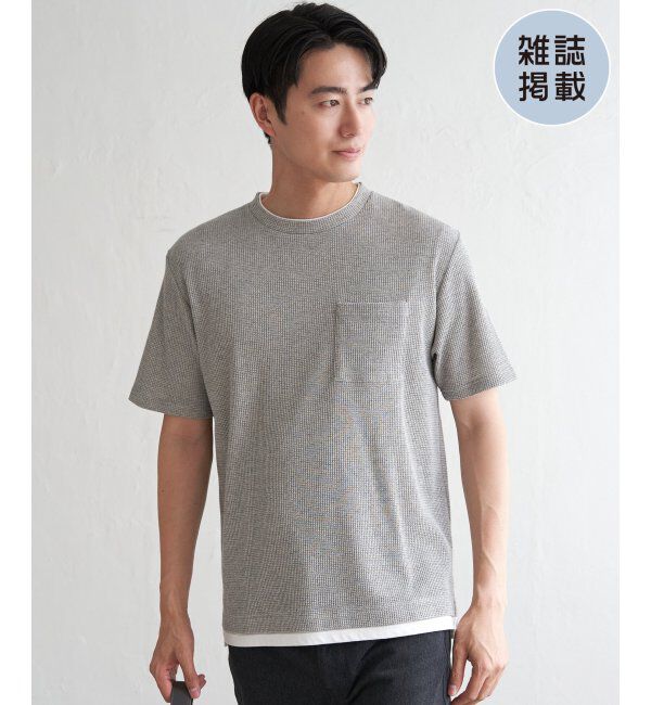 【雑誌 MonoMax(宝島社)5月号掲載】サラッとしたワッフル素材が特徴のフェイクレイヤードTシャツ。ネックと裾部分に別生地を施し、まるで重ね着をしているかの.. |