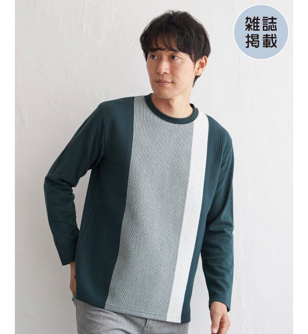 【雑誌 MonoMax(宝島社)12月号掲載】ikka らしさが詰まった「異素材」×「ブロッキング」のクルーネックプルオーバー。縦の切り替えが新鮮で、すっきりとしたシ.. |