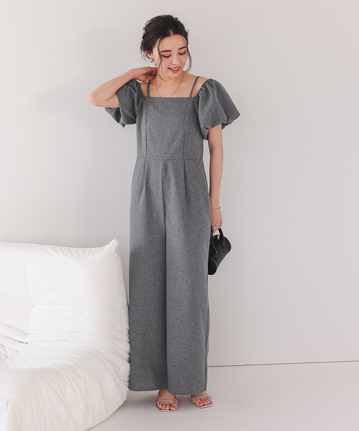 2wayオフショルパフスリーブオールインワン