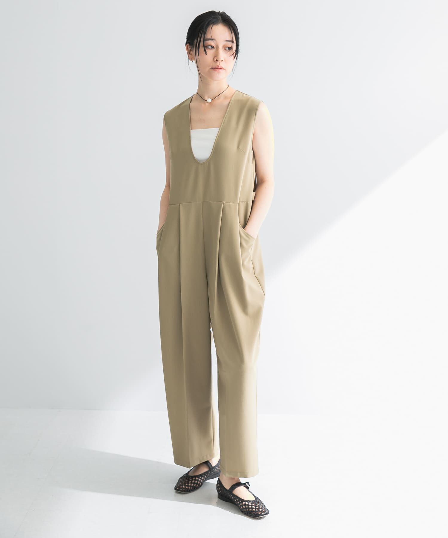 【アーバンリサーチ/URBAN RESEARCH】 Uネックタックオールインワン