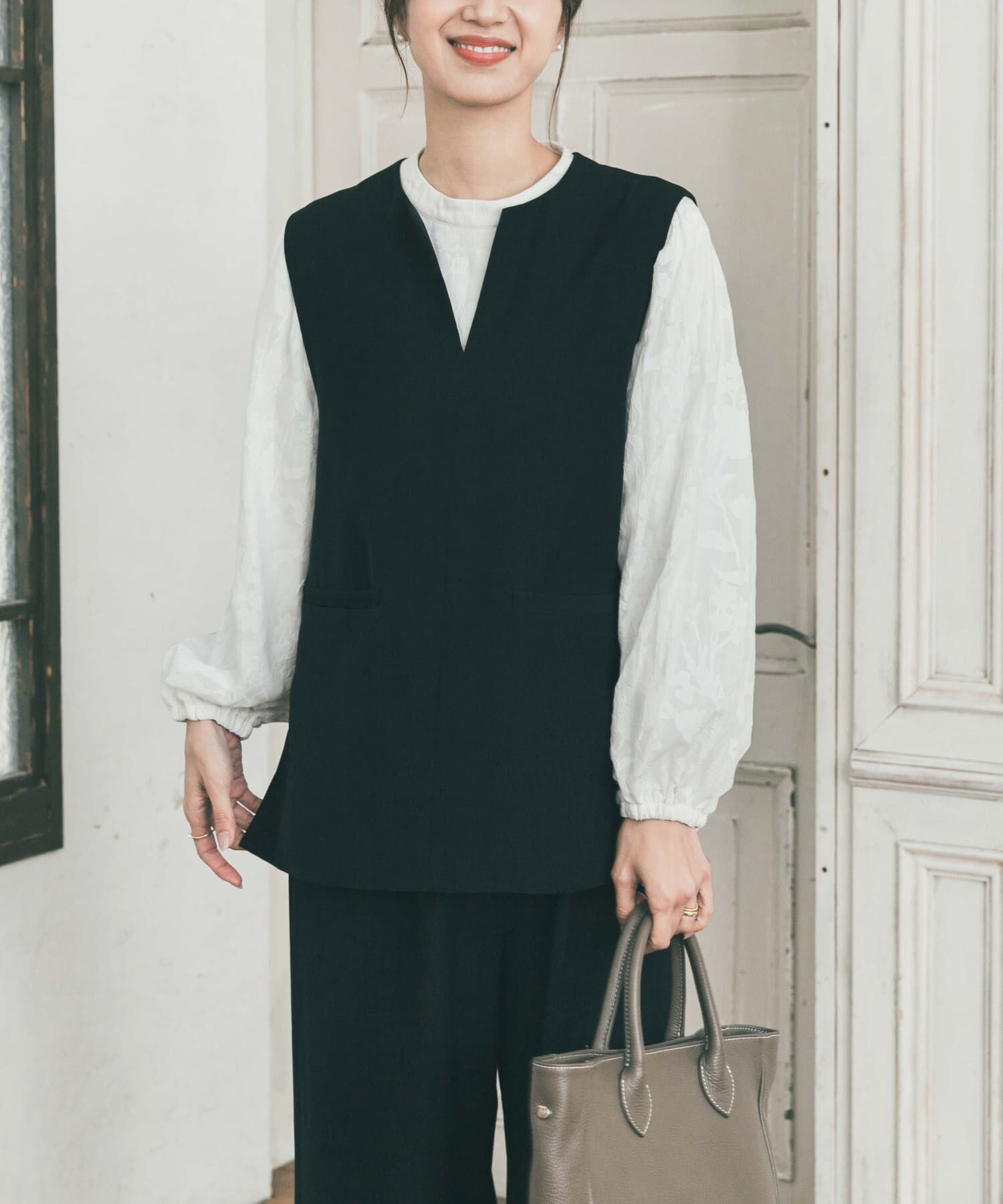 オンオフ活躍する大人のスリットネックベストセレモニーシーンなど、さまざまな行事ごとに使用できる上品なベストをご用意しました。きちんと感のある装いに仕.. |