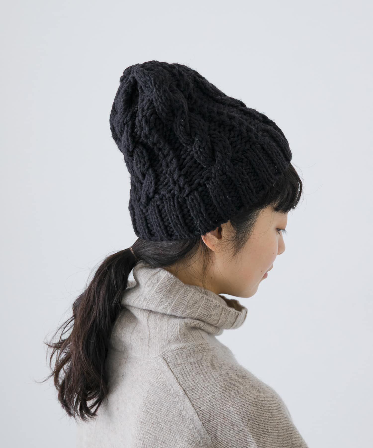 雰囲気のあるアラン柄がアクセントにスタイリングのポイントになるニット帽をご紹介します。柄の存在感と程よいボリュームが使い勝手のいい一品。手編みならで.. |