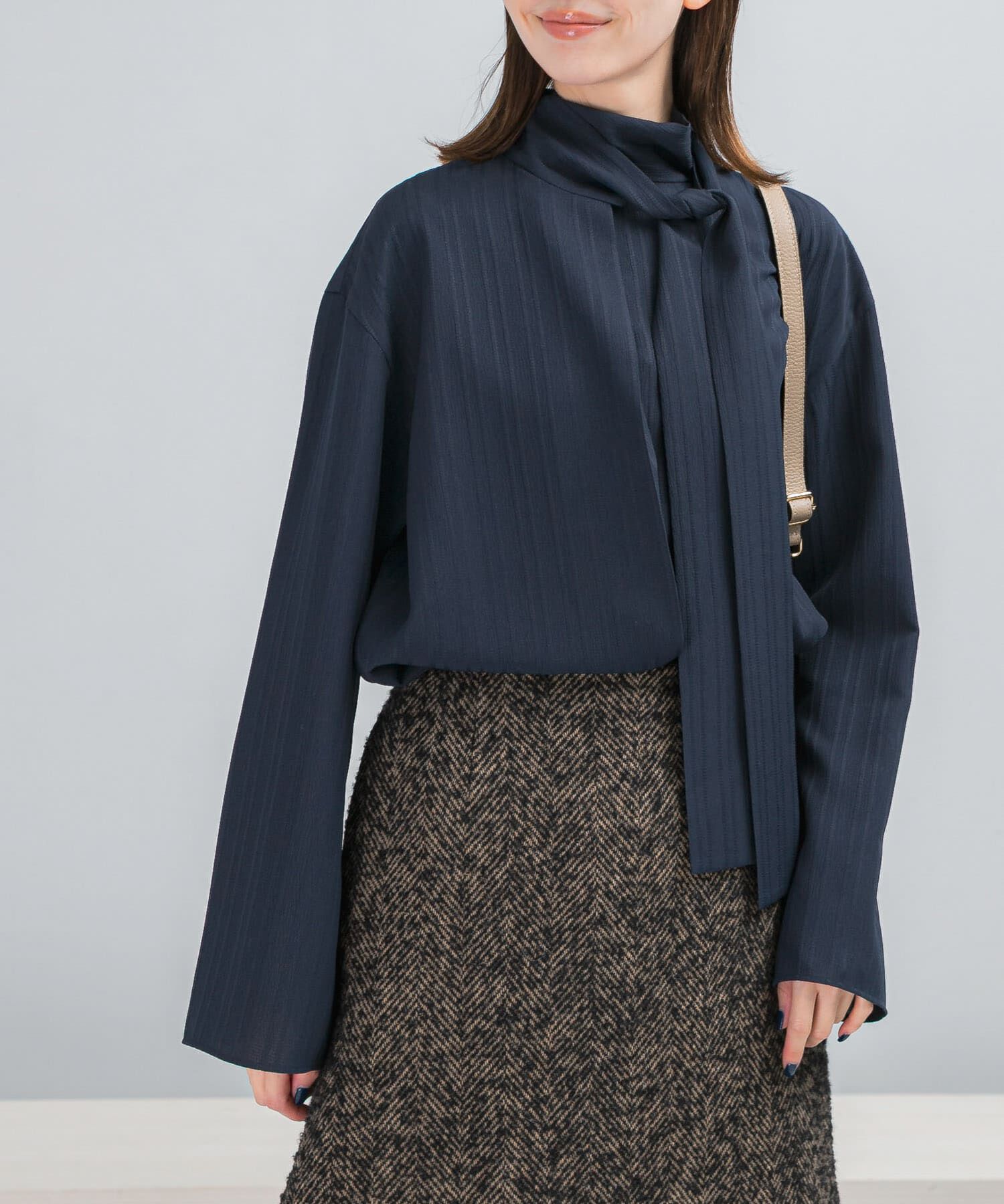 【上品な印象を漂わせるボウタイブラウス】ハイネックデザインのボウタイが、クラシックで印象的な一着。サイドポイントのデザインにより、スカーフのようにも.. |