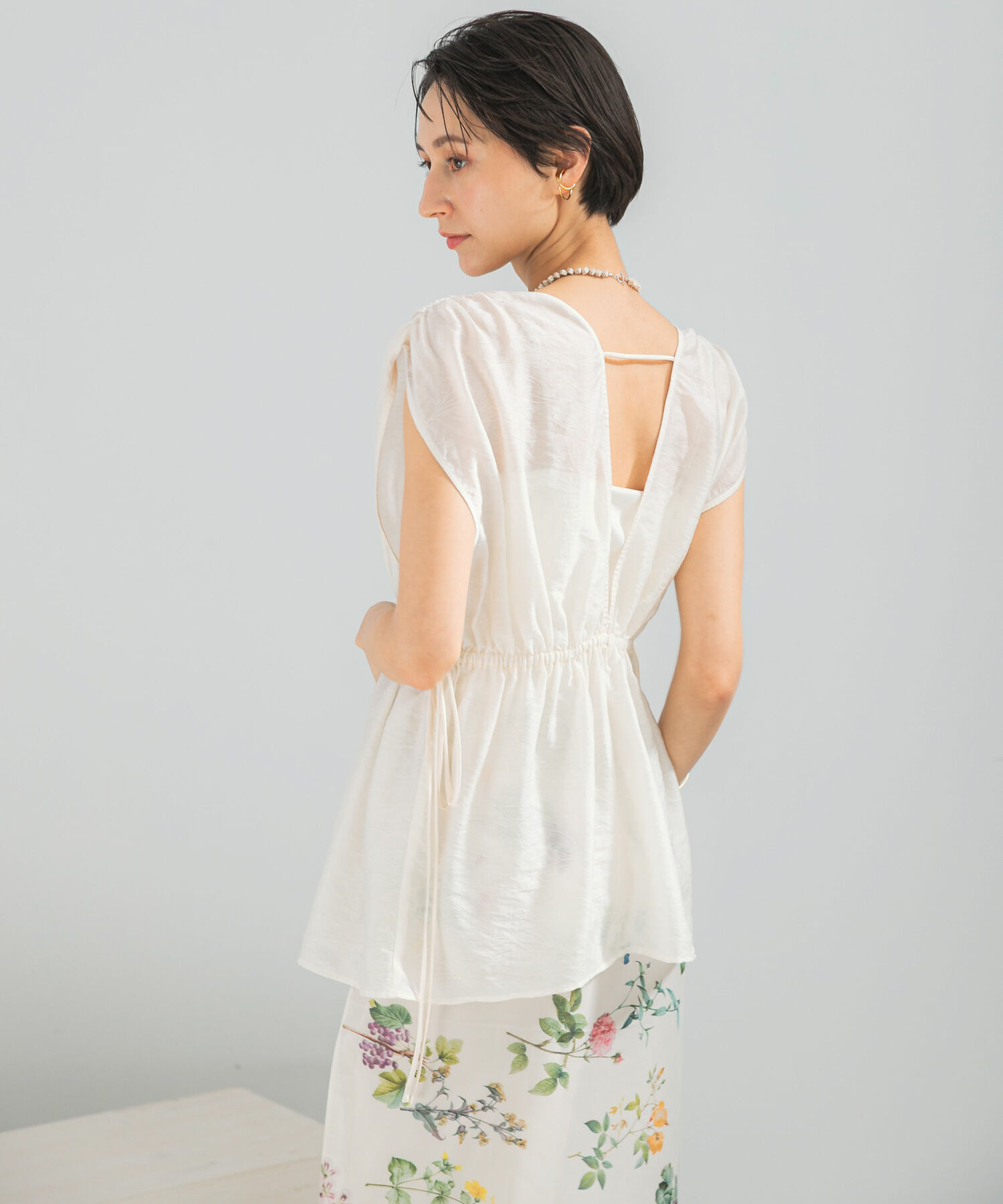 【繊細なジャガード素材でシーズンムード高まるプラスワンアイテム】ボタニカル柄をあしらったセミシアージャガード素材が、繊細で涼やかなシーズンムードを演.. |