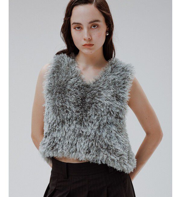 ◆2025-26秋冬◆ADAM ET ROPE' FEMME【Material】シャギーのような見栄えのフワフワしたイタリア糸が華やかなニットベスト。柔らかで触れたくなるような肌触り。.. |