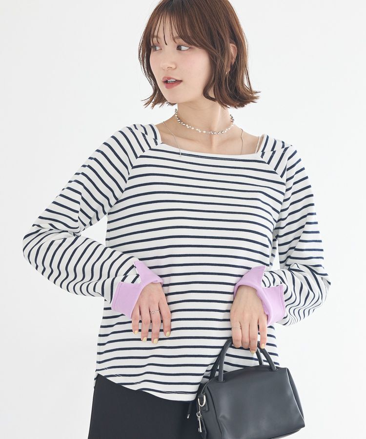 ボーダーにスクエアネックとラグラン袖を合わせた、ほどよい抜け感が魅力のバイカラープルオーバー。鎖骨をきれいに見せる開きとゆったりとした着丈で、思わず.. |