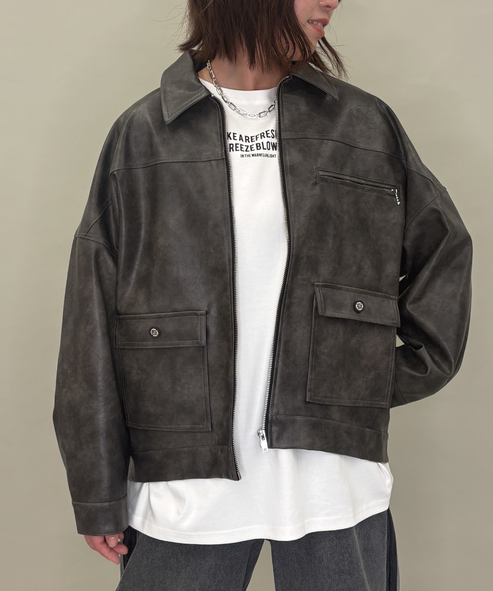 al’aise modulation(アレーズモジュレーション) フラップポケットフェイクレザージャケット ダークブラウン 38