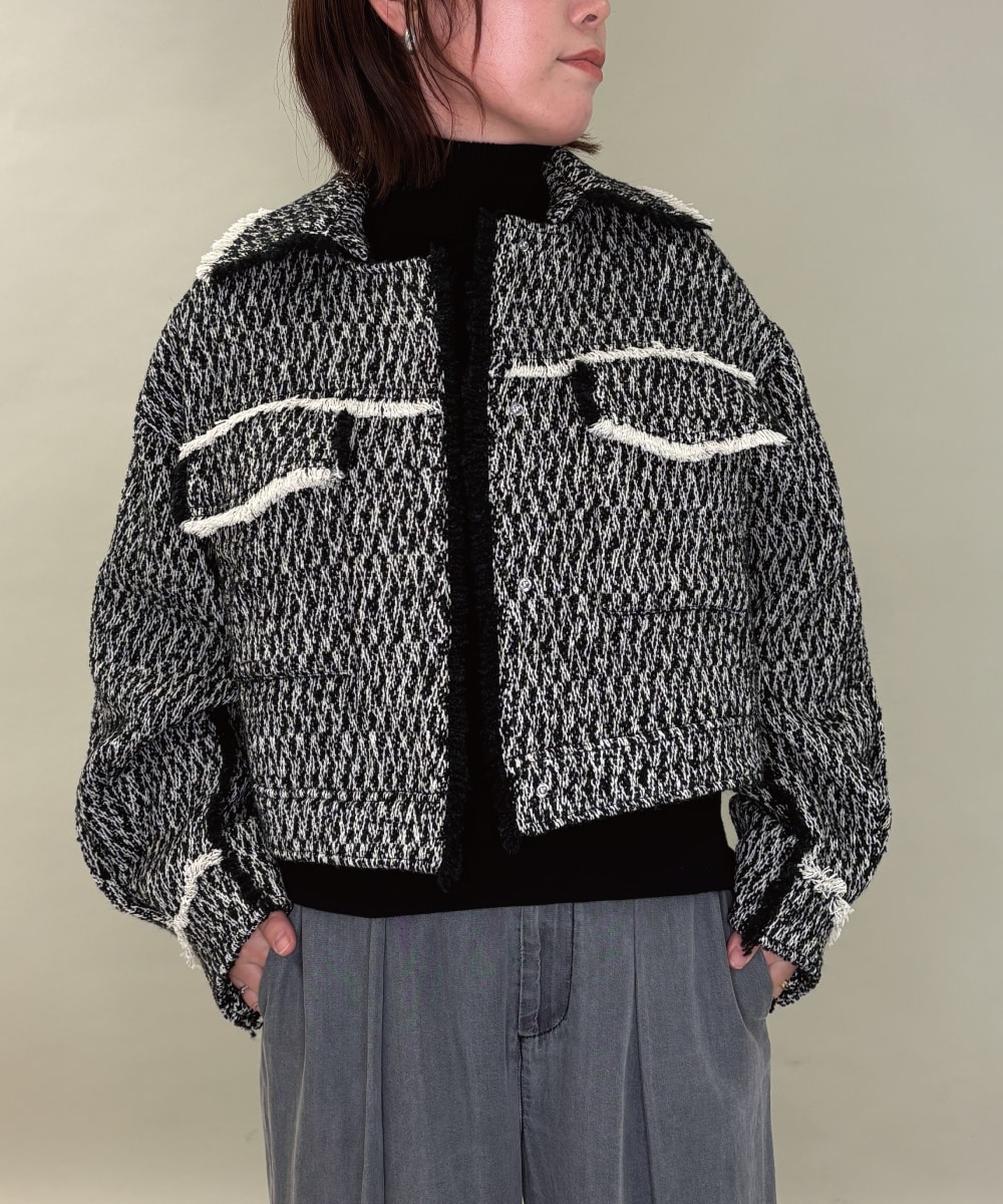 al’aise modulation(アレーズモジュレーション) フリンジツイードショートジャケット ブラック/黒 38