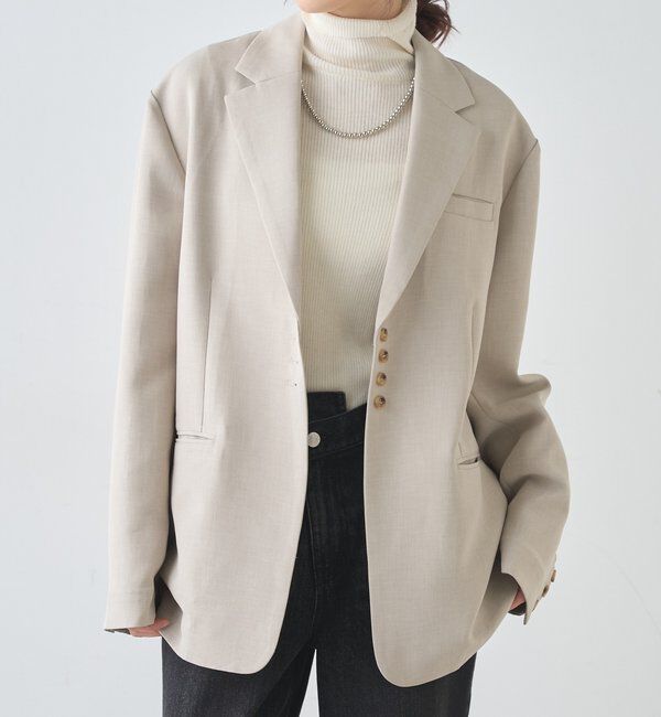 ■デザインポイントカラーレスでかっちりしすぎずに着用できるVネックジャケット。程よくゆったりして適度な肩幅のボックスシルエット。柔らかい芯地にして、製.. |