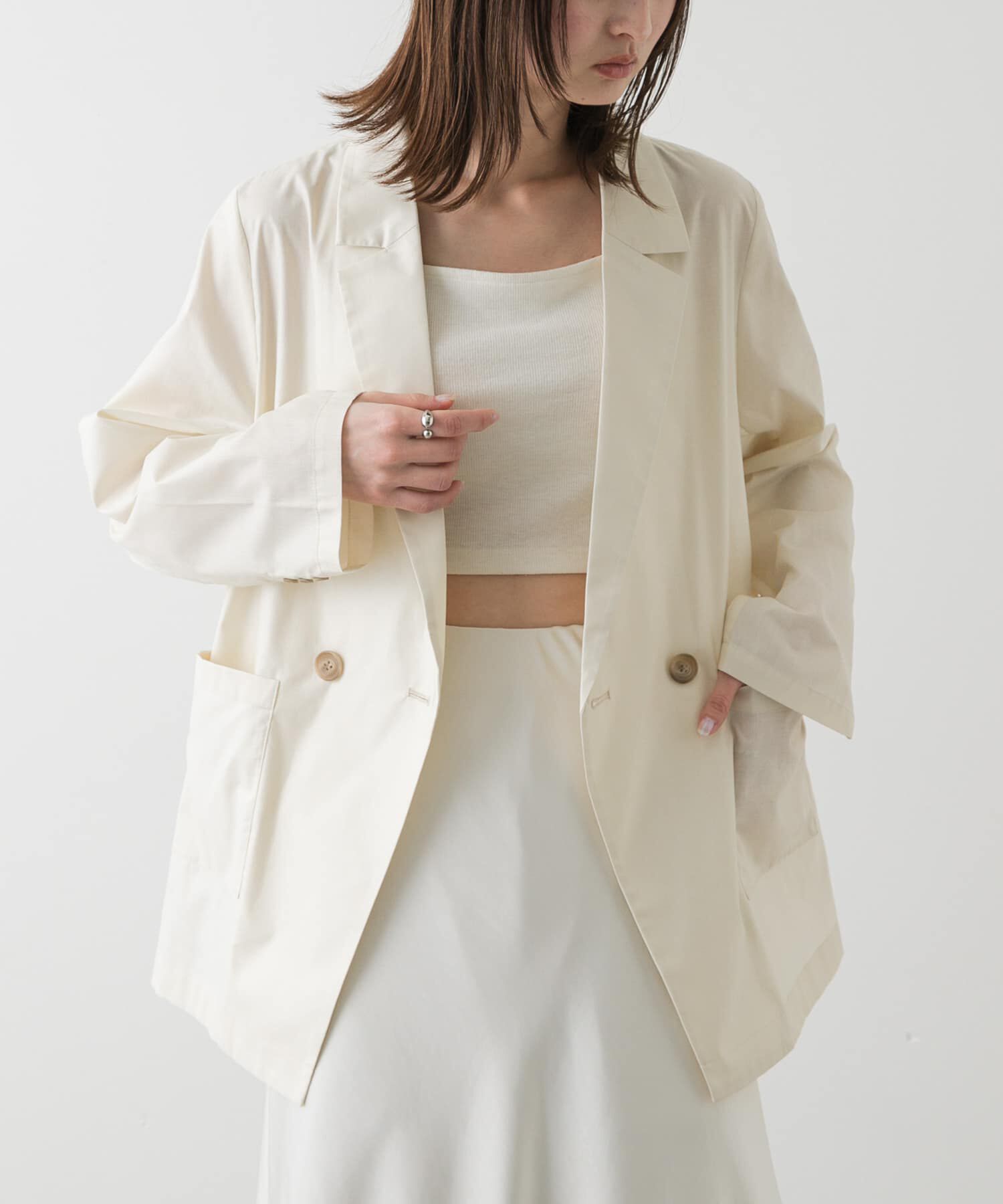 【デイリーからオフィスまで。シーンレスに活躍するリネンライクな旬顔アウター】・さらりとした清涼感のある素材を使用し、暑い季節でも軽やかに羽織れる一着.. |