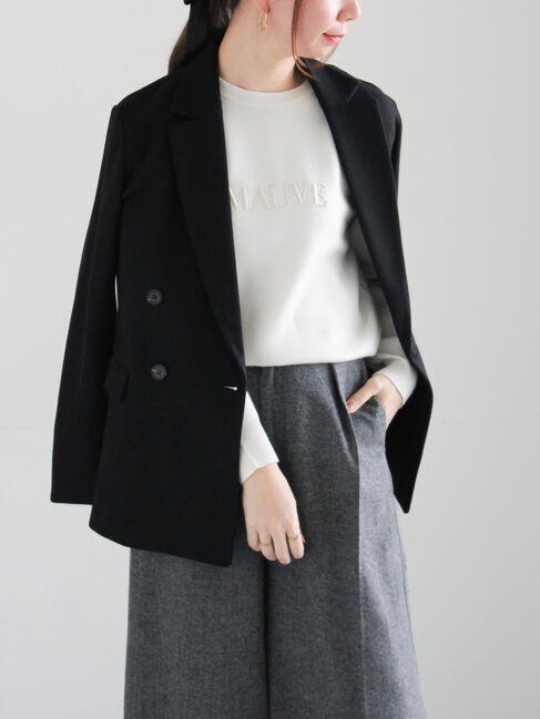 ウール混のジャージー素材で仕立てたテーラードジャケット。ダブルボタンがクラシックな印象を添えつつ、柔らかな生地感で肩まわりも軽やかに着こなせます。ブ.. |