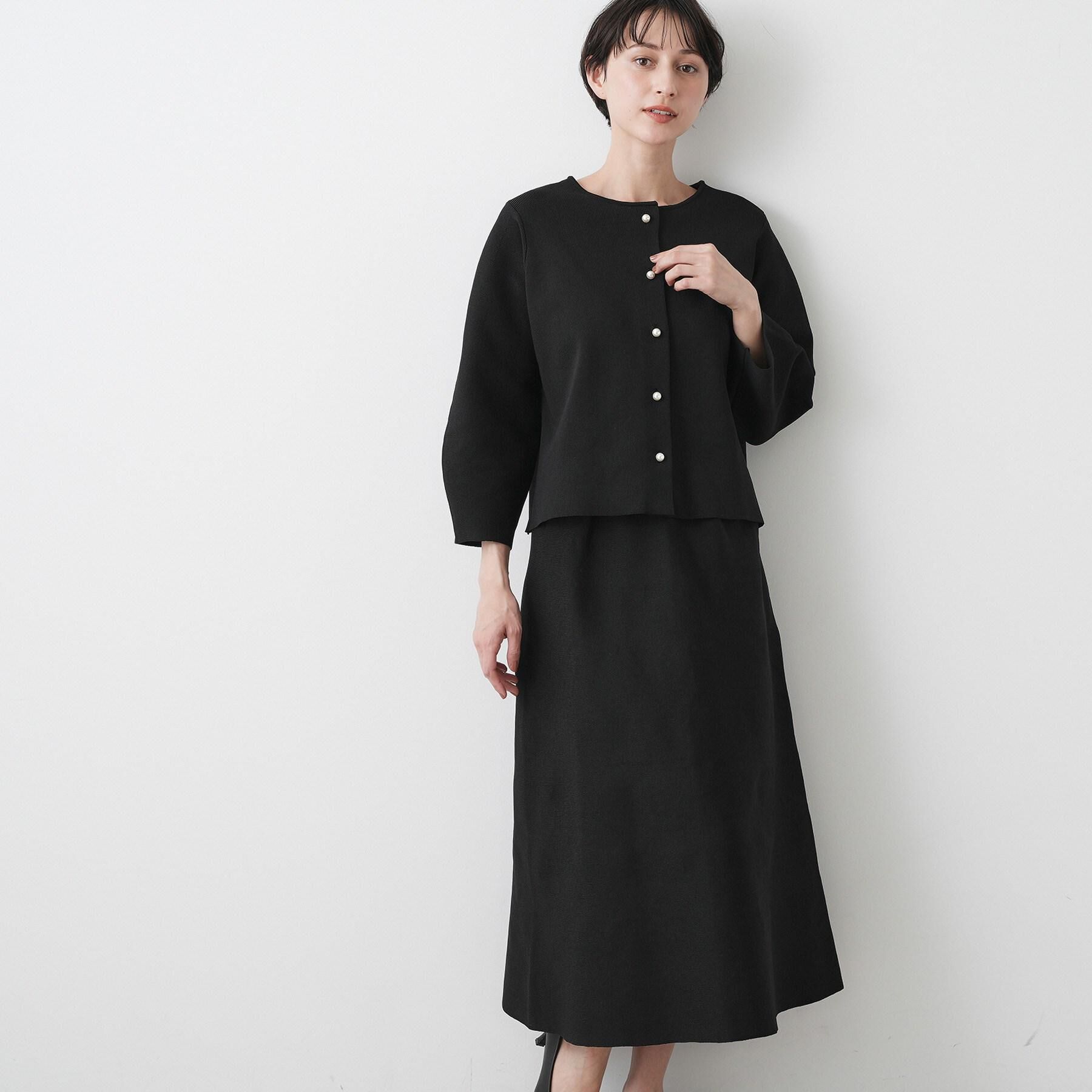 【デザインポイント】きちんと感とラクさを同時に叶えるニット素材の上品セットアップ。軽くてシワになりにくいポリ素材を使用し、デイリーから通勤、華やかな.. |