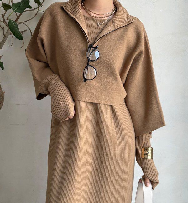 【ドゥドゥ/DOUDOU】 【WEB限定】リブニット+Uネックニットワンピースセット