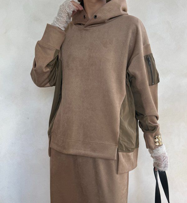 【ドゥドゥ/DOUDOU】 【WEB限定】起毛ダンボールポケットフーディー+タイトスカートセット