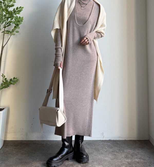 ■2025 AUTUMN & WINTER ITEM■ WEB限定! 重ねるだけでスタイル完成。リブニット×Uネックワンピースセット シンプルなのにぐっとおしゃれ見え.. |