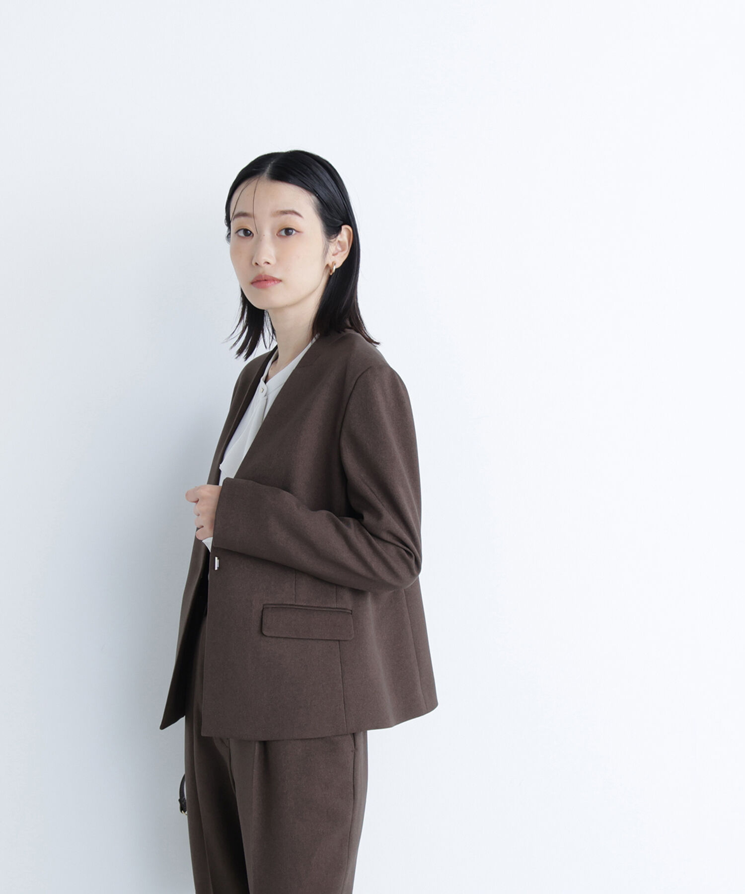 【ナチュラルビューティーベーシック/NATURAL BEAUTY BASIC】 ウーステッドライクツイル SETUP ノーカラージャケット