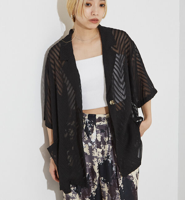 -Design-さらりとしたリネンライクな素材と今年らしい織柄入りのシアー素材、ジャージー素材の3素材展開のジャケット。柄も新柄のシアーにブラッシュアップさ.. |