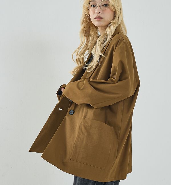 -Design-シンプルながらも今っぽいオーバーサイズ感が魅力のワイドジャケット。肩まわりと身幅に余裕を持たせたルーズシルエットで、Lサイズはメンズでも着ら.. |