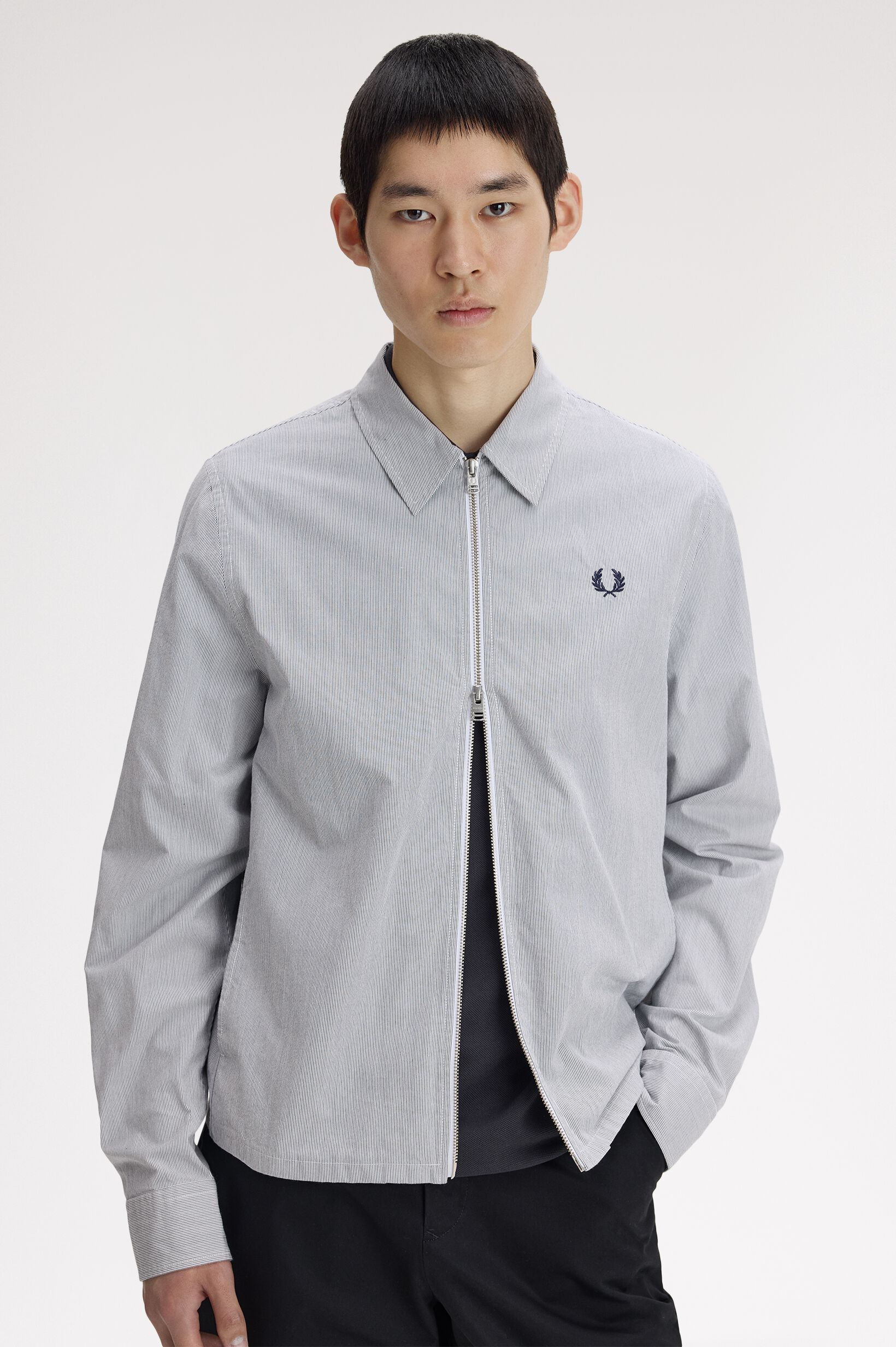 【フレッドペリー/FRED PERRY】 Striped Seersucker Zip Through Overshirt