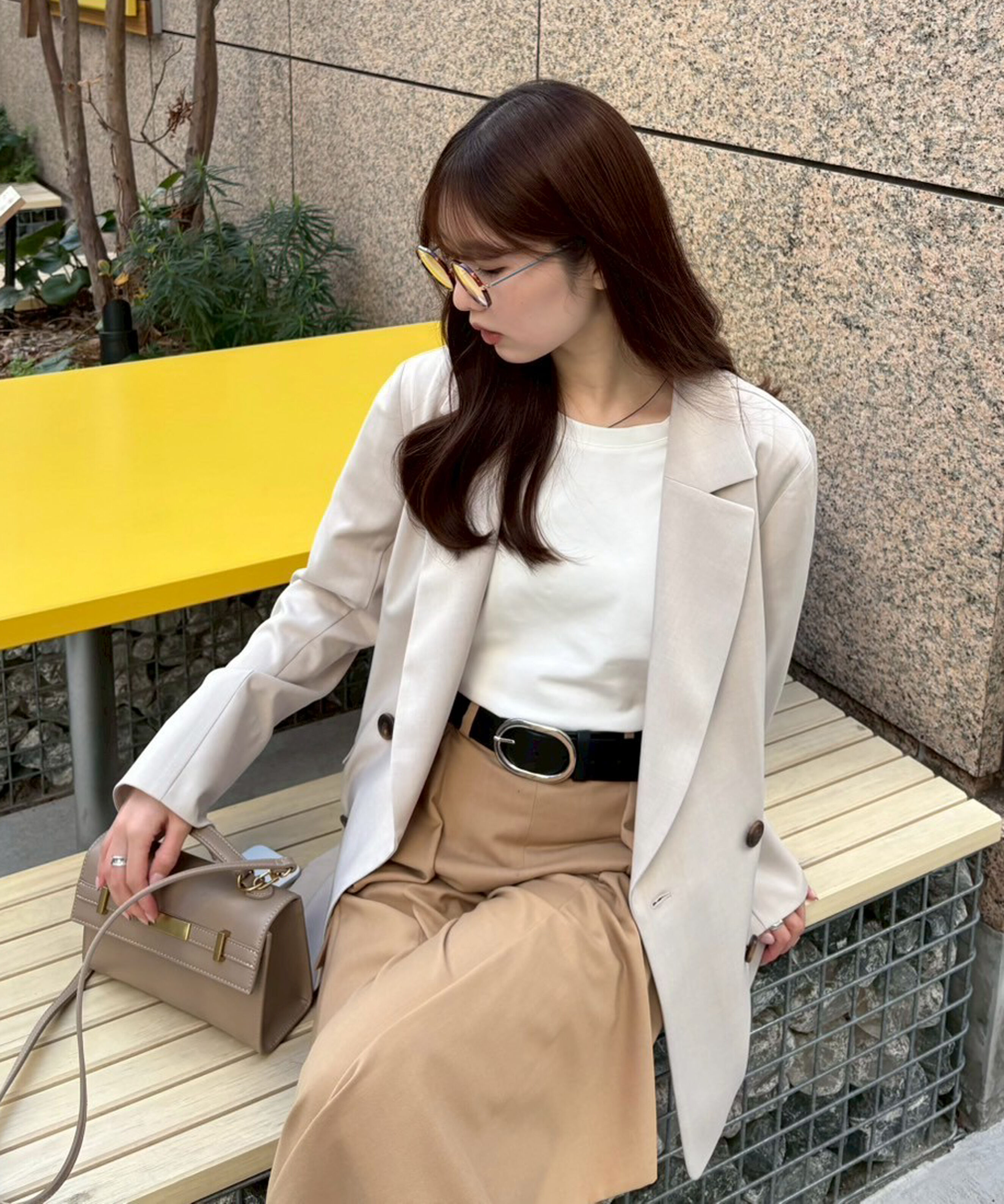 きちんと見えするテーラーカラーのダブルブレストジャケット。後ろはベンツ入りで動きやすさと着心地の良さを両立しています。ワンピースやパンツスタイルなど.. |