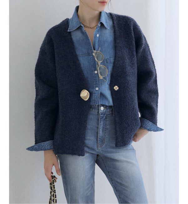 【2025AW】La Totaliteふんわりとした風合いが魅力のブークレニットを使用した大人のニットジャケット。立体感のある素材感がシンプルなデザインに奥行きを与.. |