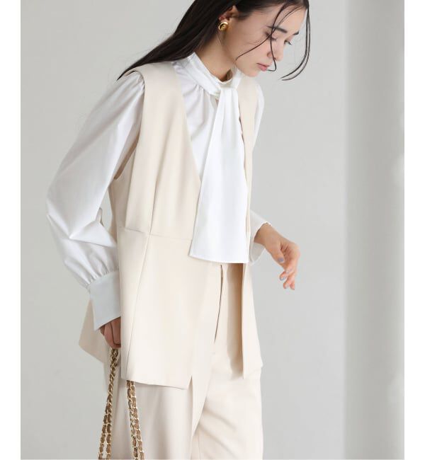 【2026SS】LaTotaliteすっきりとしたVネックが印象的なコンシャスジレ。ウエスト位置をやや高めに設定したペプラムシルエットでボディラインを美しく見せてく.. |