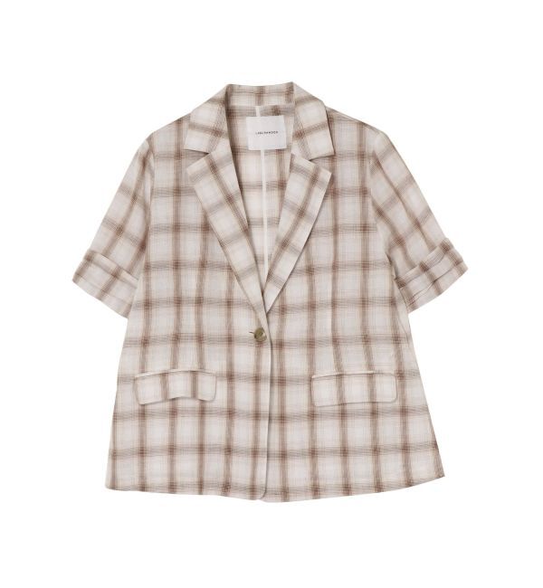 ■デザインポイント薄手のチェック素材を使用したハーフスリーブのジャケット。裏地がない仕様なのでさらっと羽織りのシャツ感覚で着用いただけます。カジュア.. |