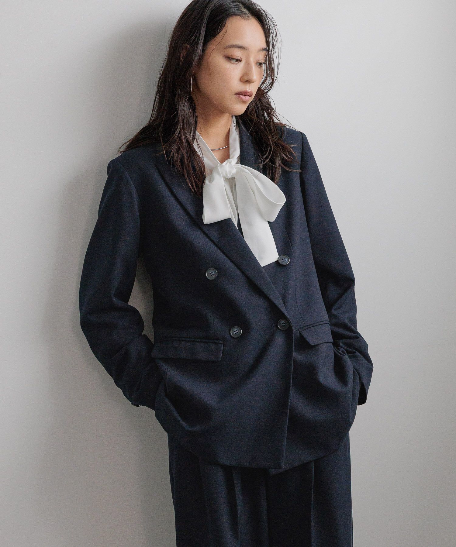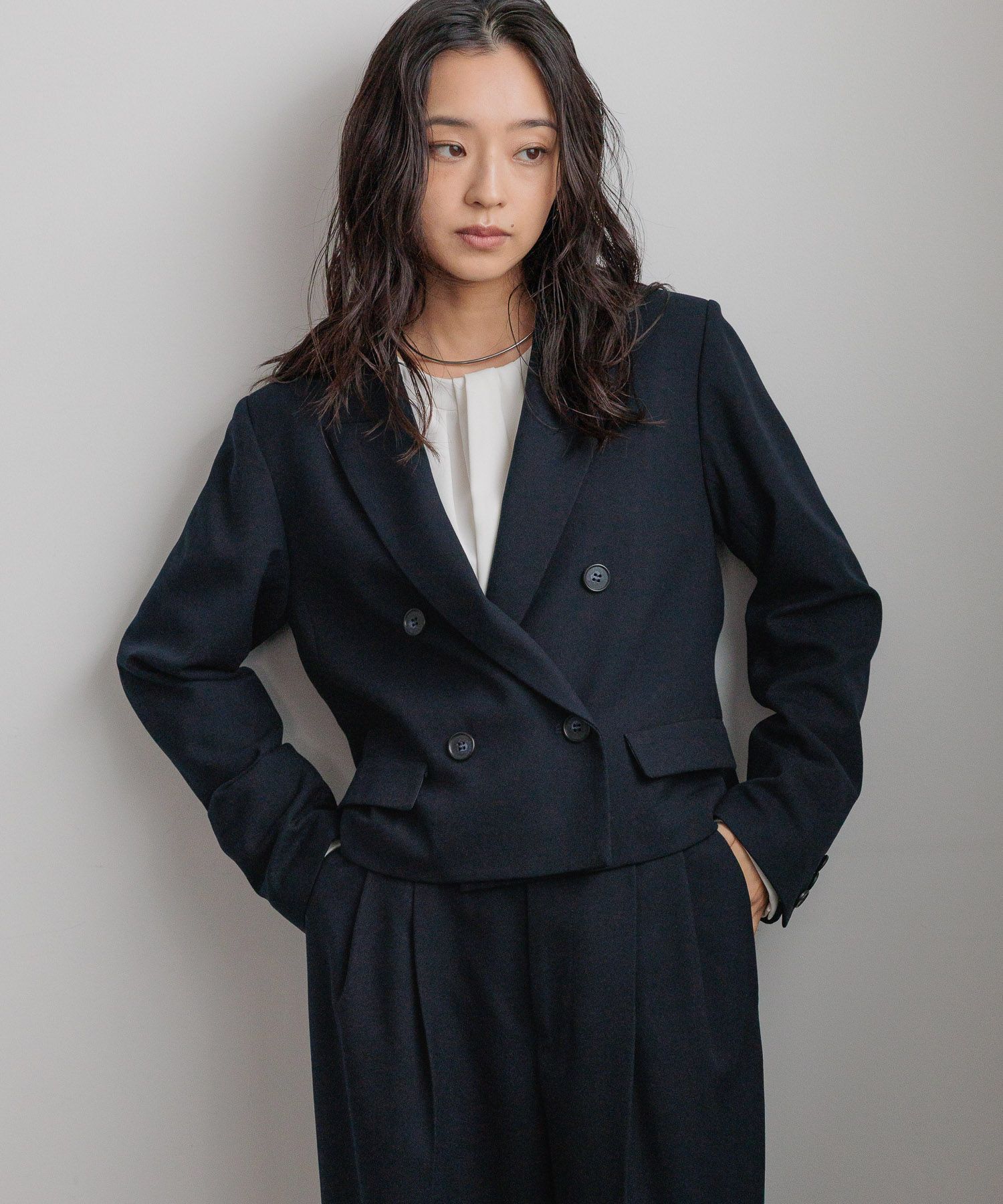 ■素材■ ほのかな光沢があり、しなやかなポリエステルレーヨンの素材を使用したダブルジャケット。 程よい落ち感が特徴で、着心地の良さがありつつもきちんと見.. |